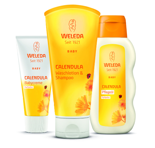 Linea Weleda CALENDULA compuesta de: Shampoo, Babycreme, ideal para el baño, junto a la crema pañal son el complemento ideal para mantener la piel del bebé en perfecto estado.