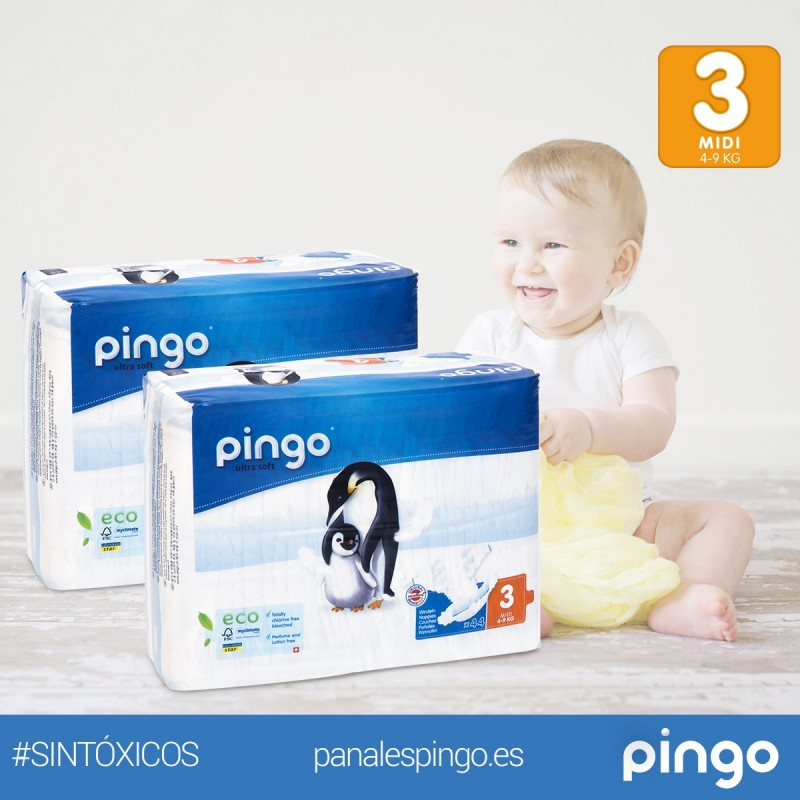 - La celulosa de los pañales Pingo es tratada con agua oxigenada, totalmente libre de cloro, dioxinas, perfumes, petrolatum.