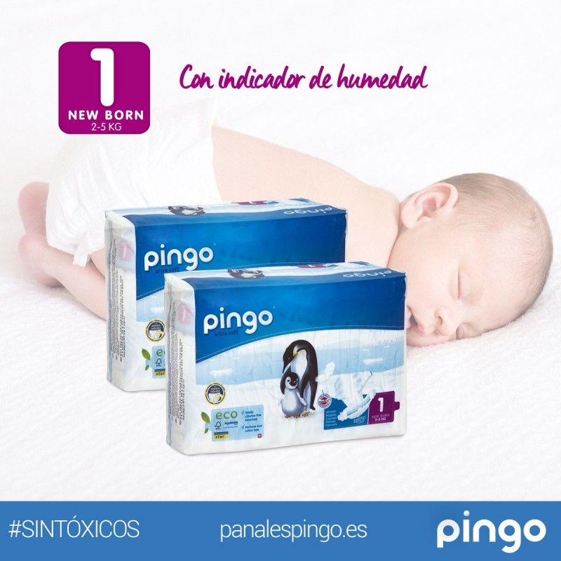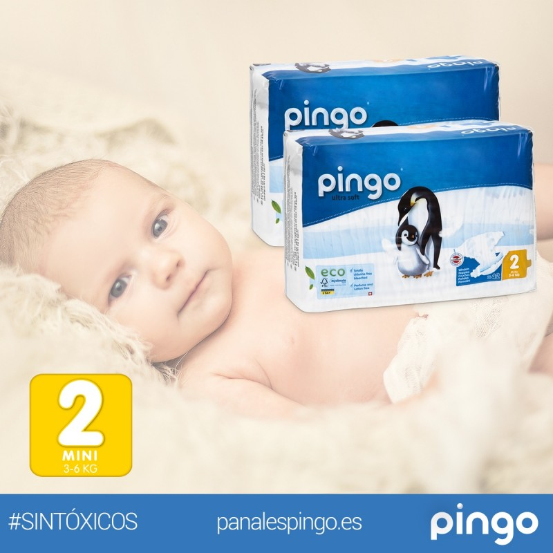 PAÑALES ECOLÓGICOS PINGO TALLA 2 MINI (3-6 KG) - CAJA DE 2 X 42 PAÑALES - TOTAL 84 PAÑALES