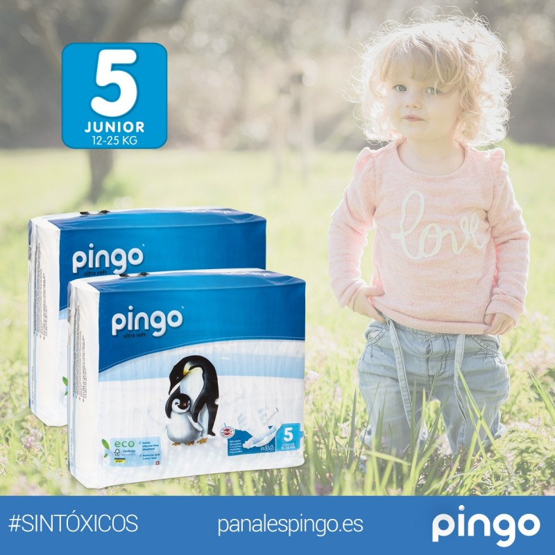 PAÑALES ECOLÓGICOS PINGO TALLA 5 JUNIOR (12-25 KG) - CAJA DE 2 X 36 PAÑALES - TOTAL: 72 PAÑALES